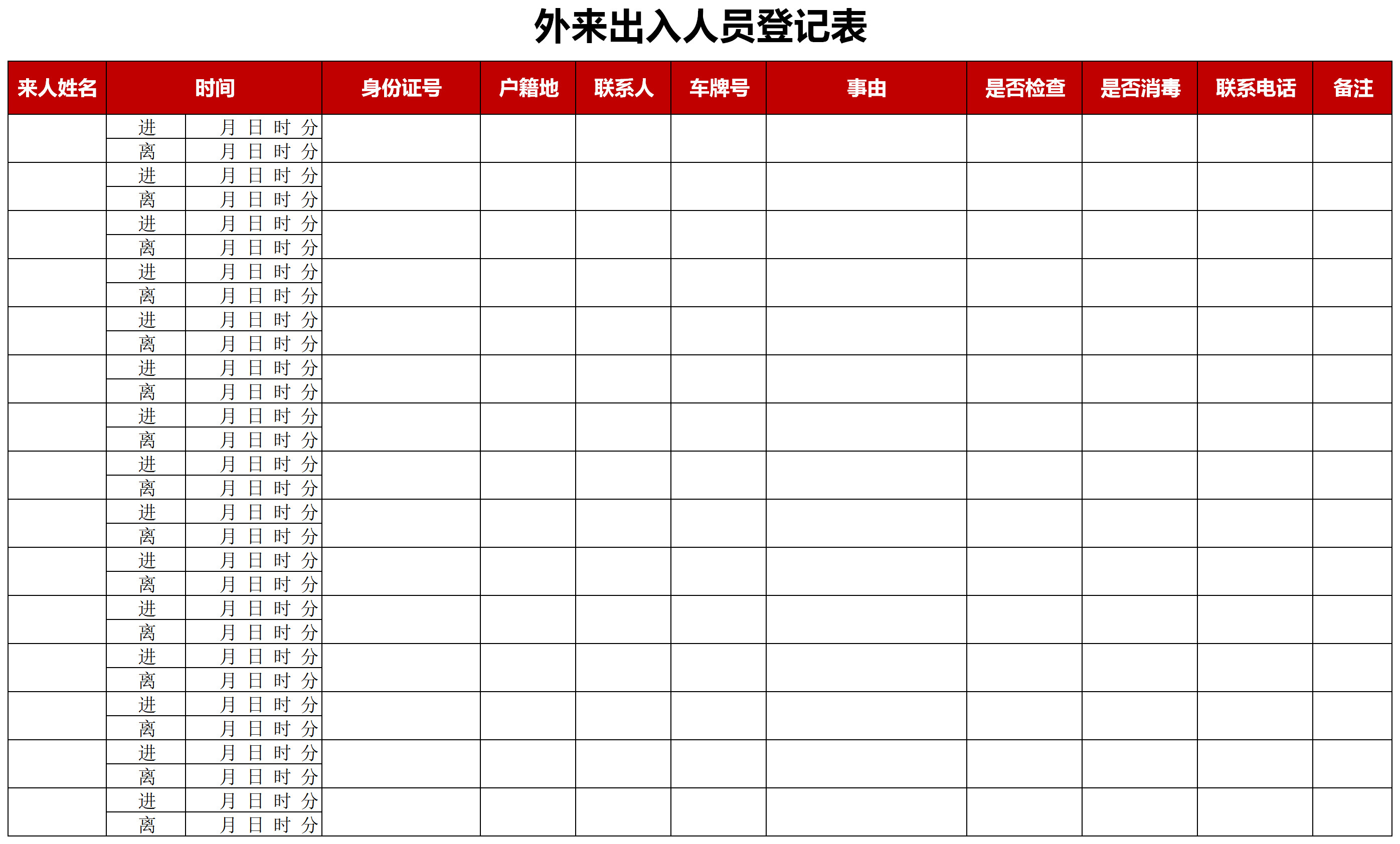 疫期外來(lái)出入人員登記表