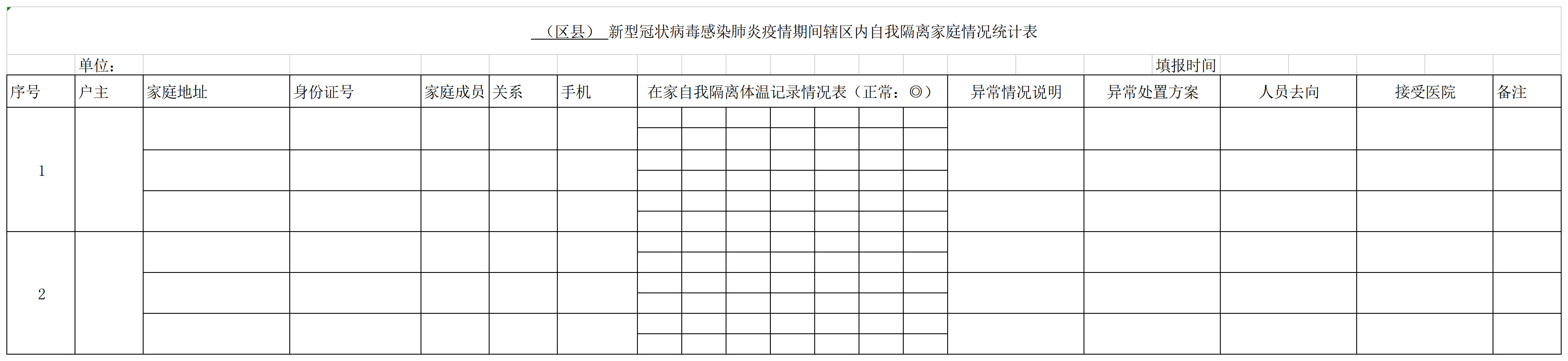 疫期自我隔離家庭情況統(tǒng)計(jì)表