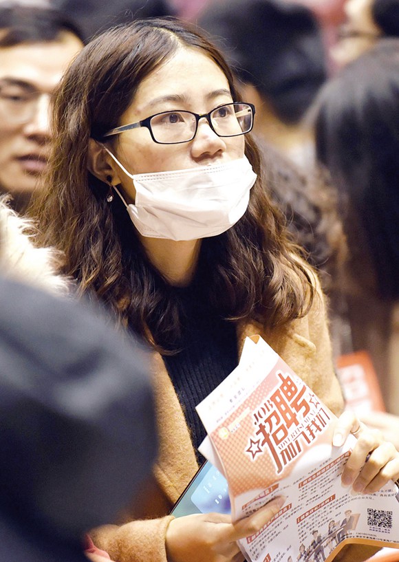 2月23日,求職者在于淮安市體育館舉行的招聘會上尋找合適的崗位。當日,我市舉辦春節(jié)后的第二場大型招聘會,電信、房產(chǎn)、機電、化工等行業(yè)的數(shù)百家用人單位,提供了4500個崗位供選擇。(賀敬華 周長國)
