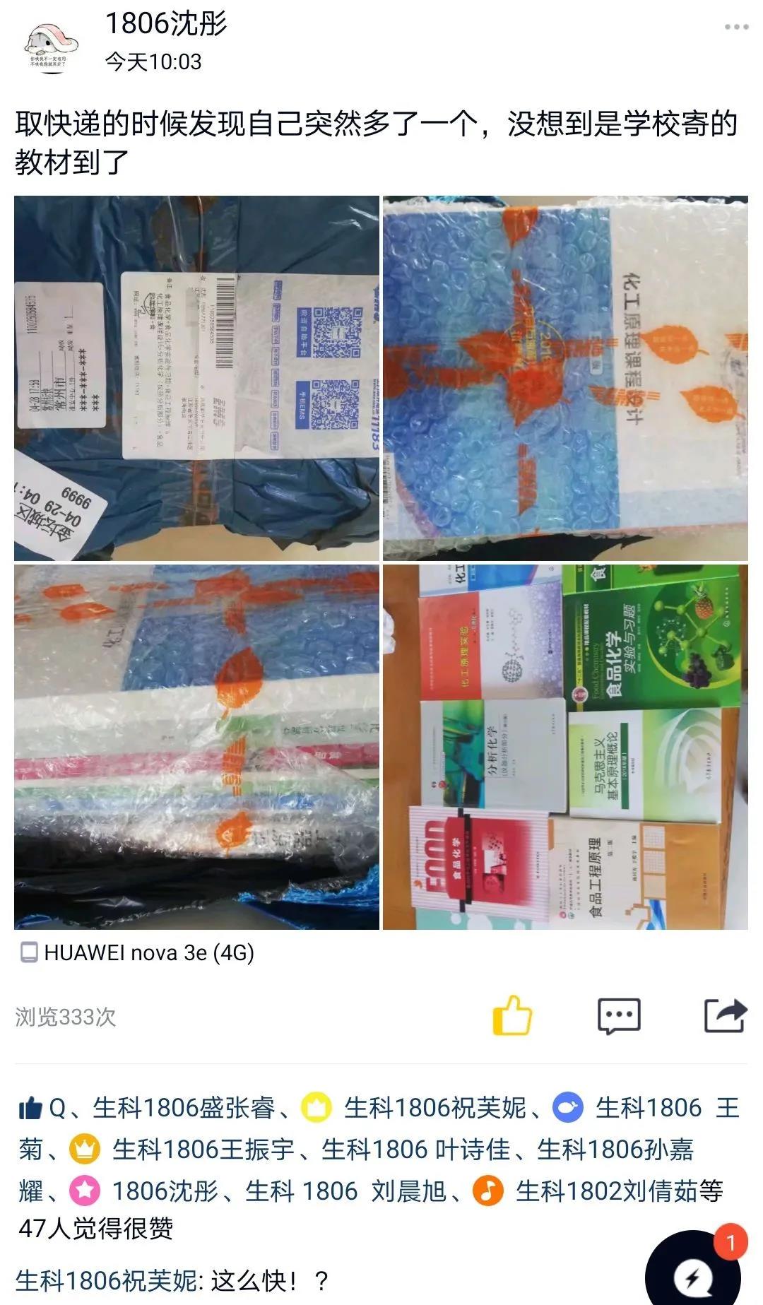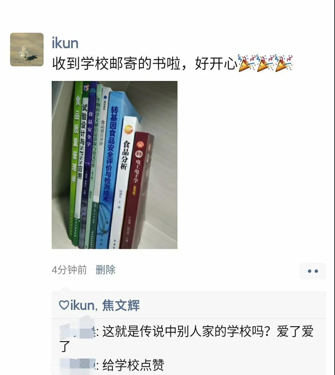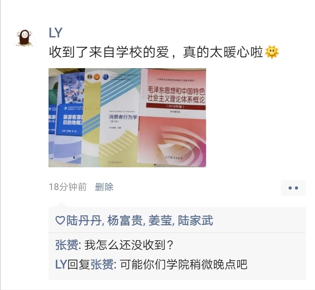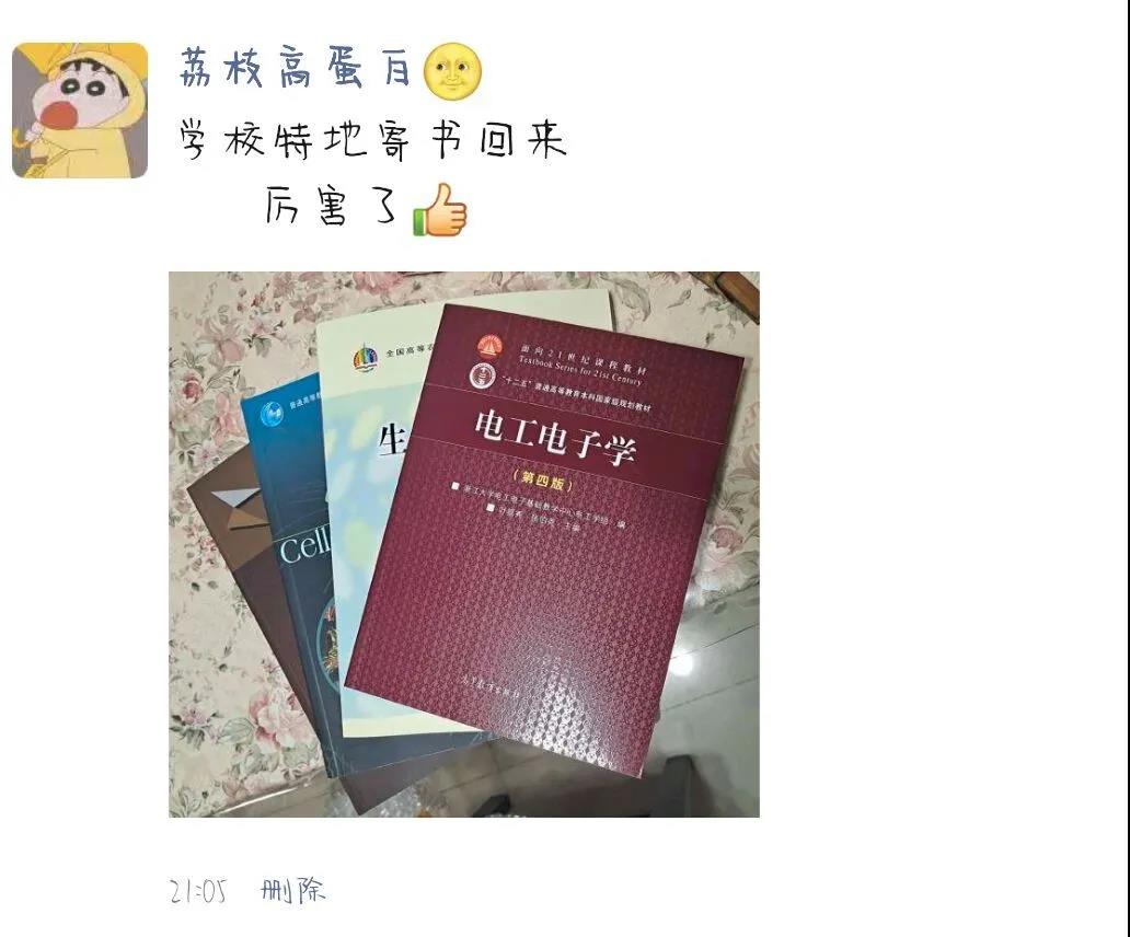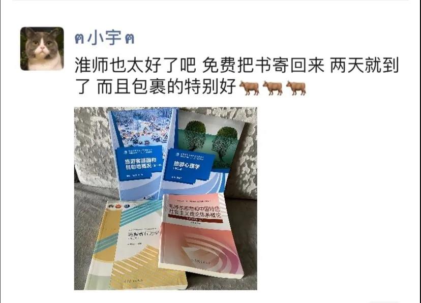 今日,淮師同學紛紛在朋友圈里花式“曬書”“隔空不隔愛,溫暖送到家”