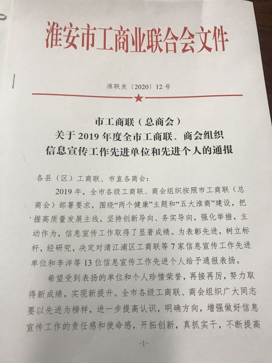 贏夏人才、淮安人才熱線CEO孟常委榮獲2019年度淮安市商會(huì)組織信息宣傳工作先進(jìn)個(gè)人