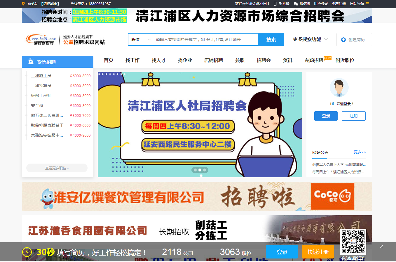 淮安贏夏人力資源有限公司旗下淮安就業(yè)網(wǎng)改版