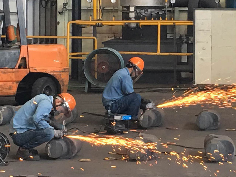 精整打磨崗位員工“全副武裝”對(duì)物件表面進(jìn)行打磨