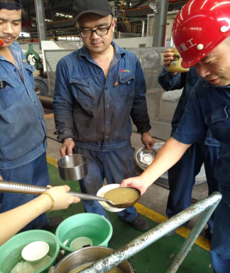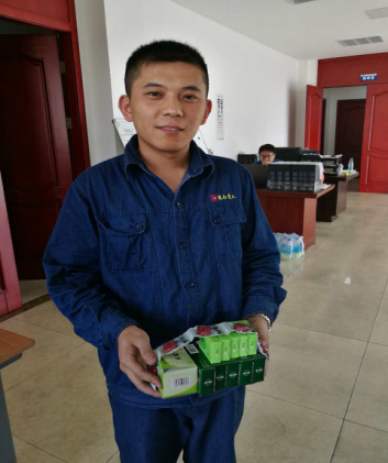 員工現(xiàn)場(chǎng)排隊(duì)領(lǐng)用冰鎮(zhèn)綠豆飲品